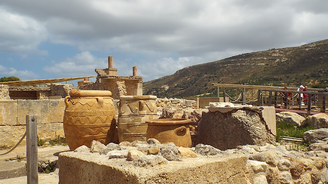 Restored pithoi - storage jars - under the Cretan sky.